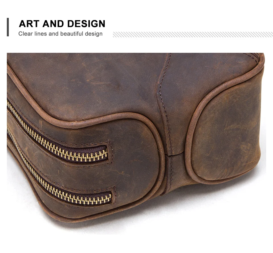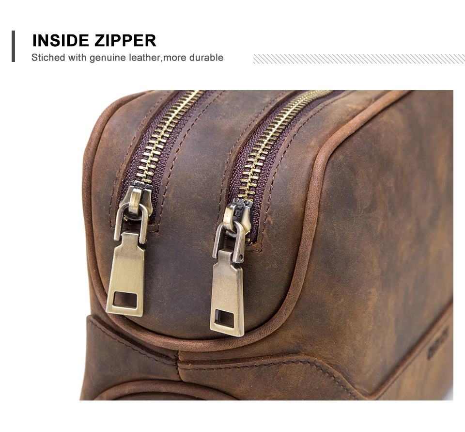 CONTACT'S Crazy Horse Genuine Leather Men'S Cosmetic Bag Male Toiletry Bag Vintage Wash Bags Man'S Make up Bags Travel Organizer